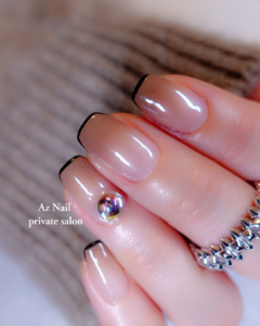 今回はスキニーフレンチでシャープなかっこよさがあるネイルに仕上がりました。
