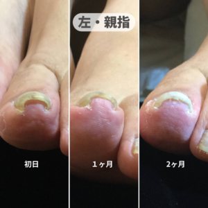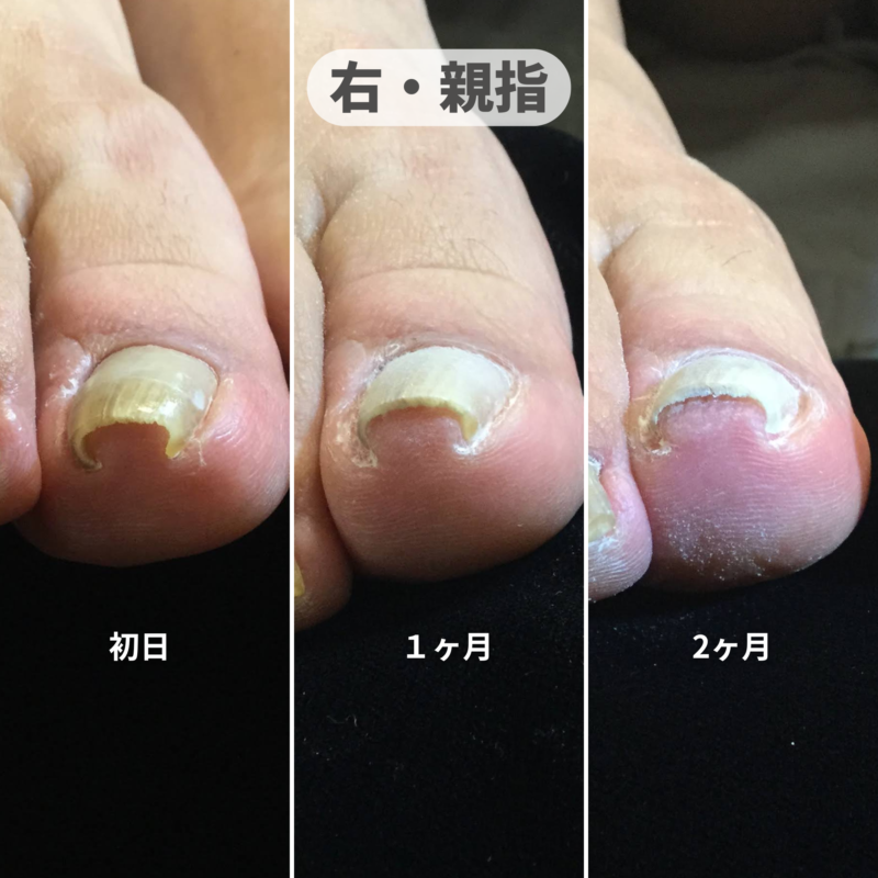 初日は、爪の先端に強いカーブがあり、圧迫による違和感が出やすい状態でした。